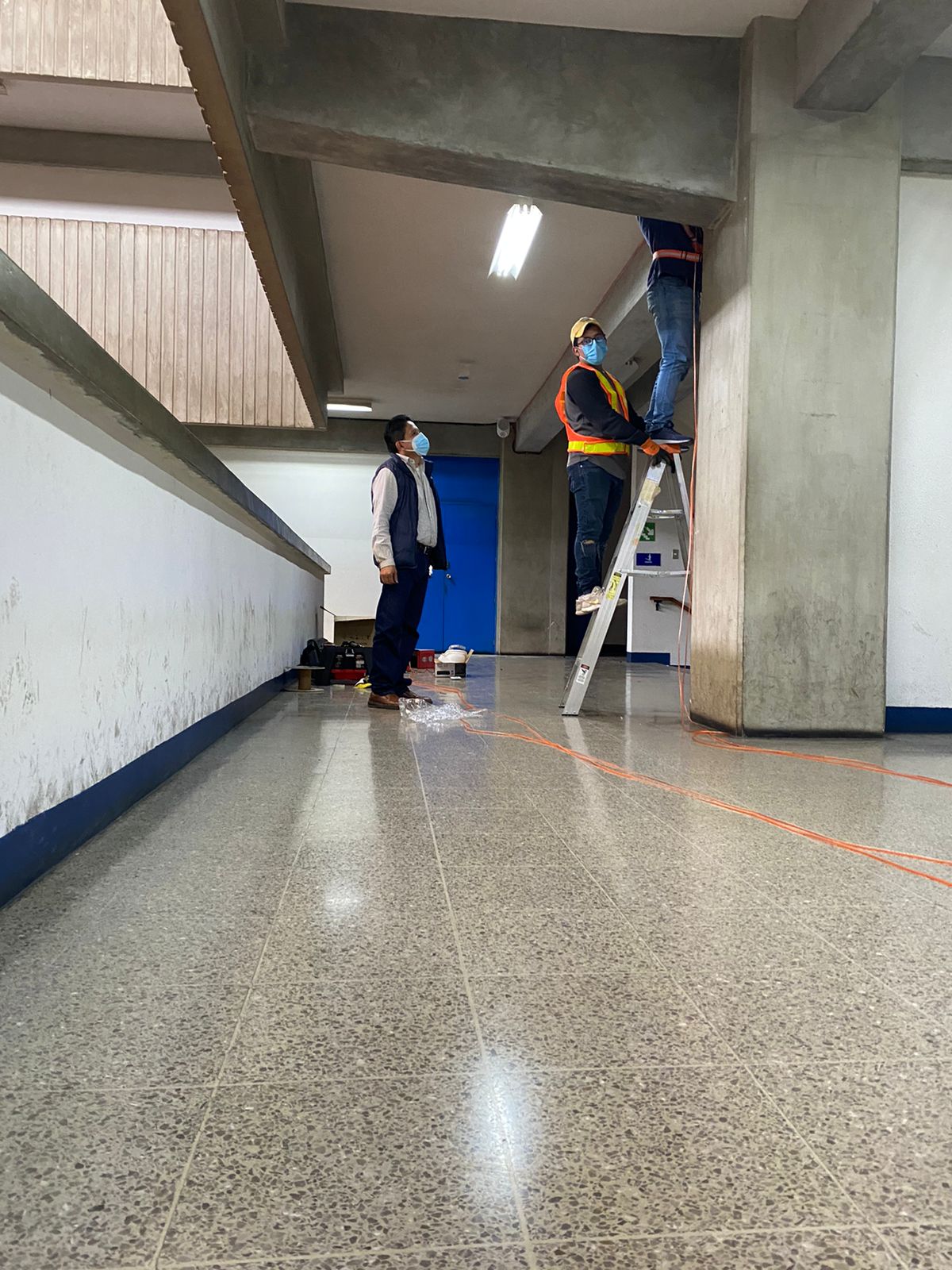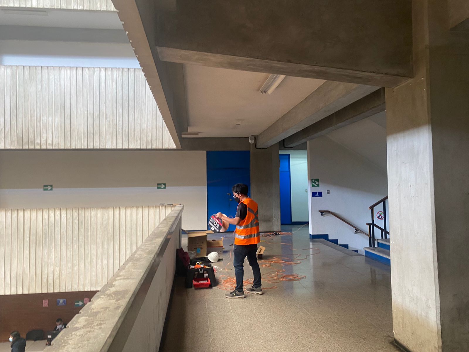 Estudiantes del curso Practicas Intermedias, hicieron la instalación de 04 bocinas en el Módulo "G", esto podrá ayudarnos a tener mejor comunicación entre estudiantes y la dirección y coordinadores